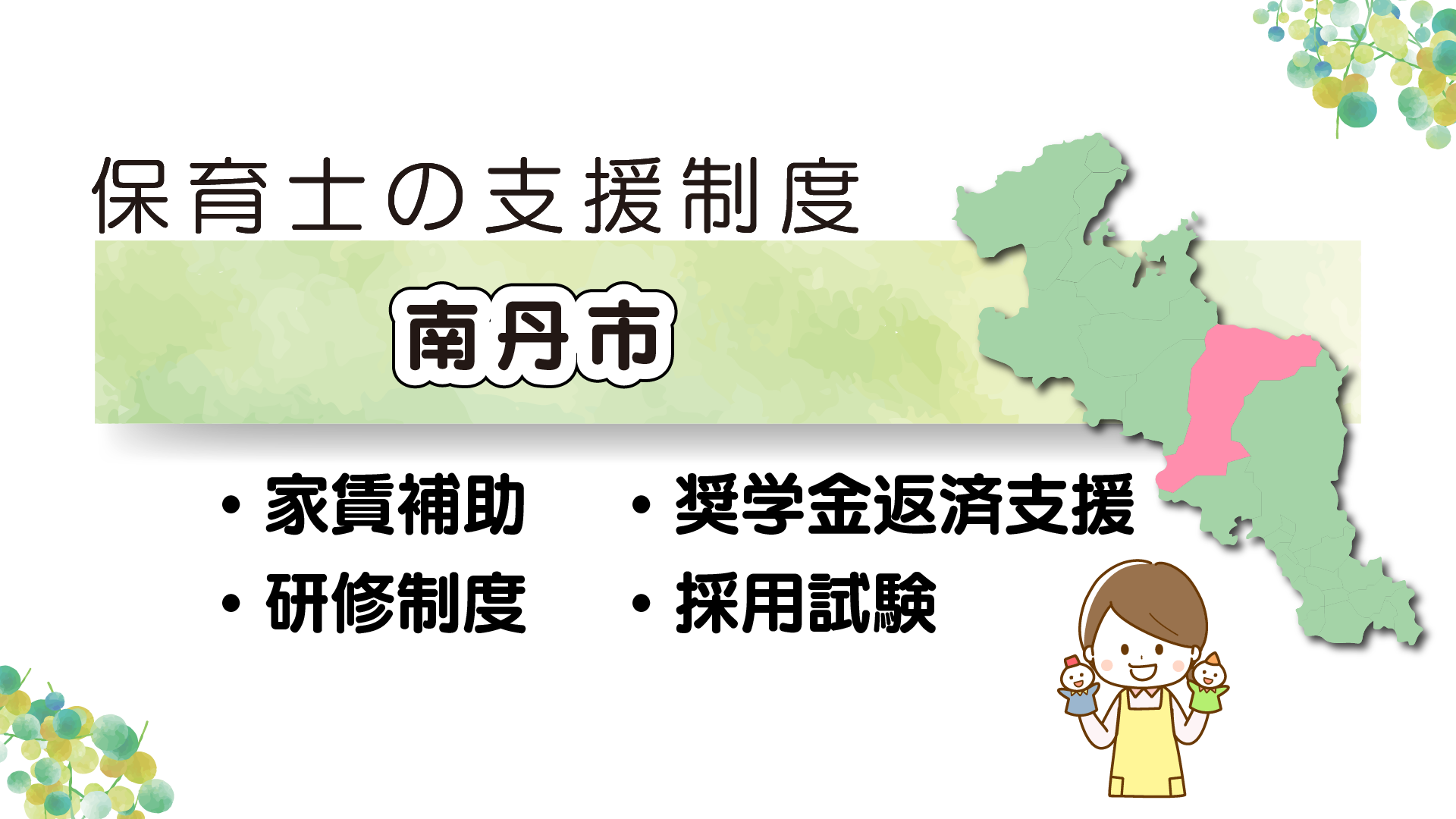 南丹市では、保育所や認定こども園などに正規雇用された保育士等へ、家賃を補助します。月額2万円を最長5年の間、家賃を補助しています。