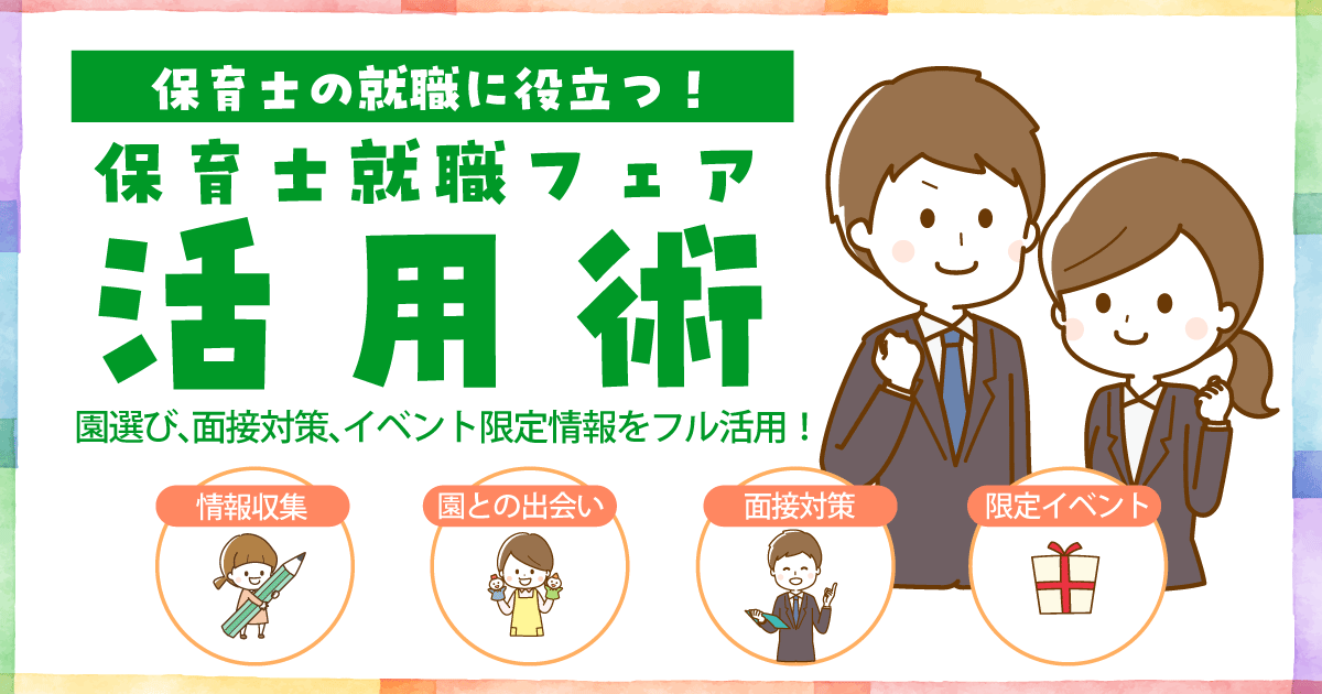 といった、当日の流れや服装のポイント、園への質問例をわかりやすくまとめました。直近の就職フェアの情報も掲載していますので、ぜひご確認ください!