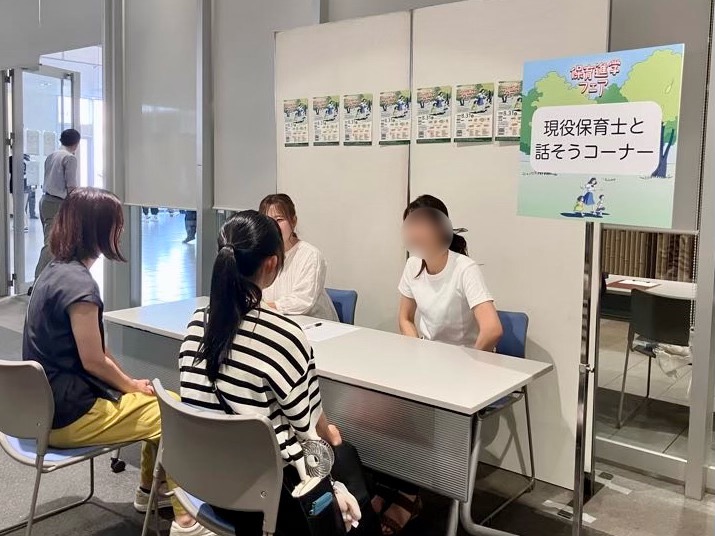 現役の保育士と直接話せるコーナーでは、学生が「実際の仕事内容」「やりがいと大変さ」「就職後の不安」などを率直に聞き、若手保育士が仕事のやりがいや魅力についてアピールしていました。学生にとっては、未来の自分をイメージする時間になっていました。